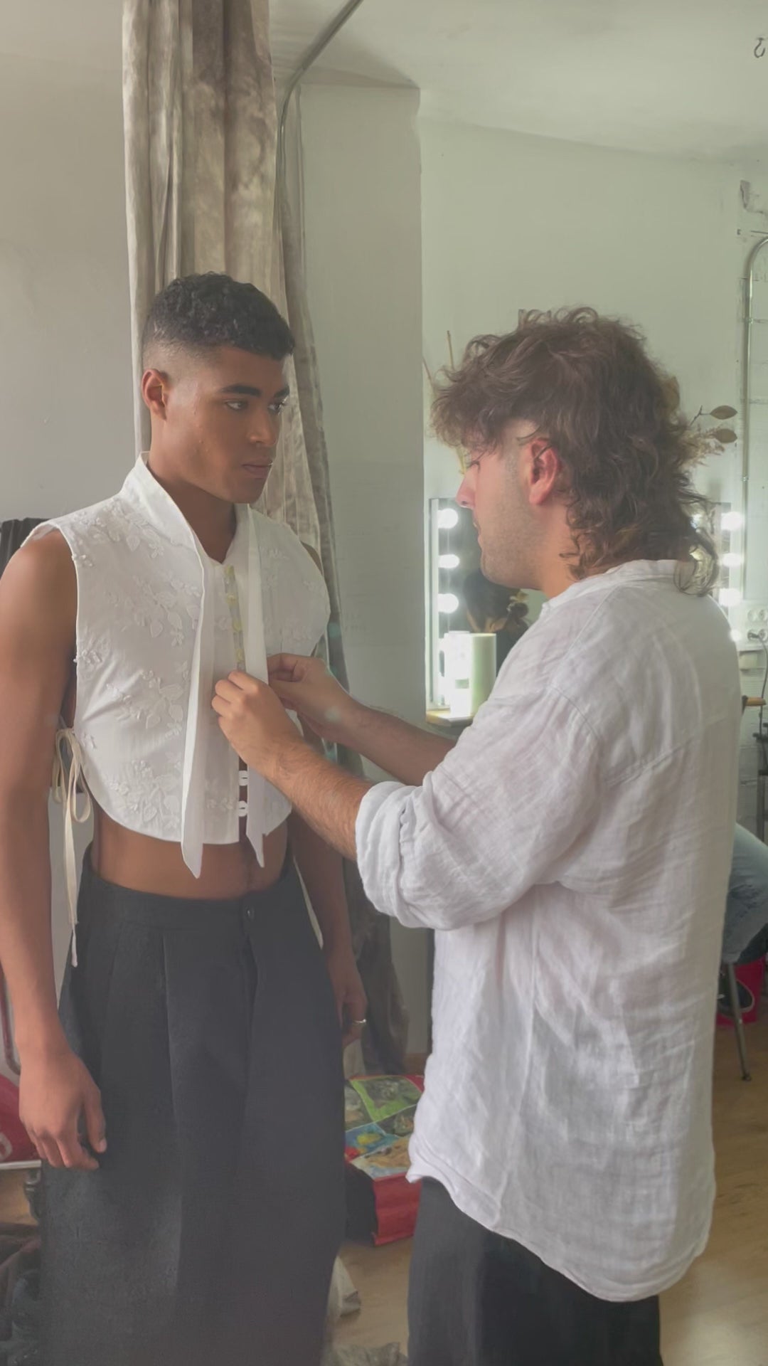 Buttoned at center front with buttons all the way to the bottom.